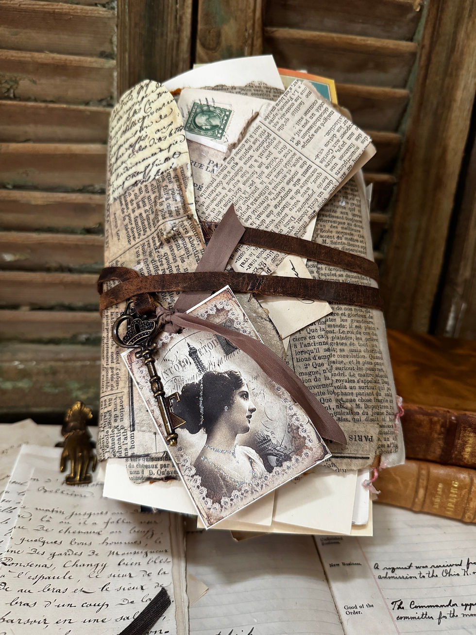 Antique French Paper and Leather Blanket Brocante Book - Extra Thick